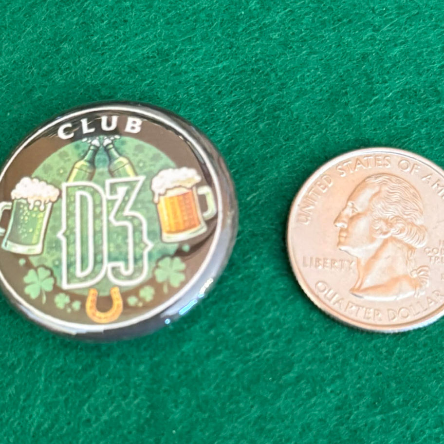 These limited-edition Club D3 St. Patrick’s Day made by members Scott and Janet Henderson, buttons are here to bring the luck, the style, and the celebration — wherever you’re raising a glass.