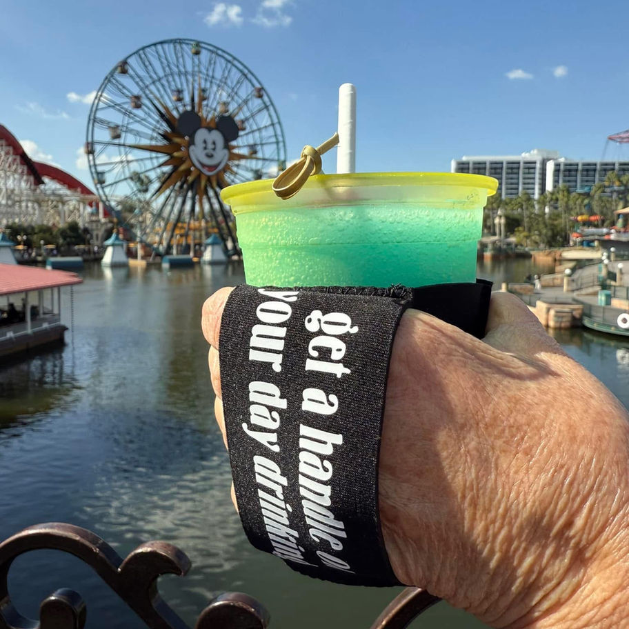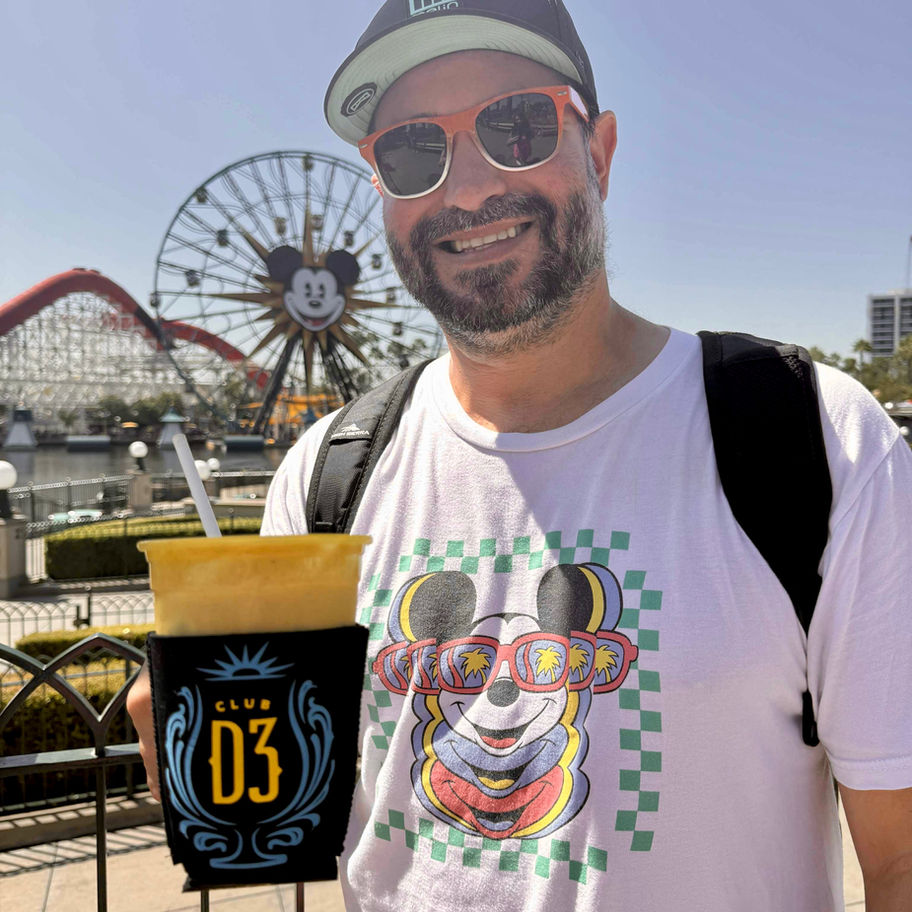 We are Jen and Ed, SoCal natives, Disney day drinkers and inventors of the “cocktail collar with comfort grip”! The idea was formed on a warm day while waiting in line for an attraction in DCA with a cold drink sweating in our hands, getting warmer by the minute. Ed and I began to brainstorm thinking how great it would be to have an insulated beverage sleeve that fit a 16oz tapered “yellow cup” - with a handle for comfort! And from there the cocktail collar was born! The design is currently in the patent pending stage and we’re very excited to partner up with Skip and Club D3 in the new collab!